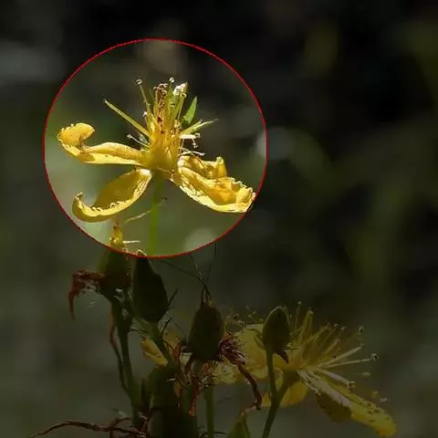 花序具1-35花,顶生,近伞房状至狭圆锥状,后者包括多数分枝。花直径(2.5-)3-8厘米,平展或外反;花蕾卵珠形,先端圆形或钝形;花梗长0.5-3厘米。萼片卵形或披针形至椭圆形或长圆形,长(3-) 5-15(-25)毫米,宽1.5-7毫米,先端锐尖至钝形,全缘,结果时直立。花瓣金黄色,倒披针形,长1.5-4 厘米,宽0.5-2厘米,十分弯曲,具腺斑或无腺斑,宿存。雄蕊极多数,5束,每束有雄蕊约30枚,花药金黄色,具松脂状腺点。子房宽卵珠形至狭卵珠状三角形,长4-7(-9)毫米,5室,具中央空腔;花柱5,长为子房的1/2至为其2倍,自基部或至上部4/5处分离。蒴果为或宽或狭的卵珠形或卵珠状三角形,长0.9-2.2厘米,宽0.5-1.2厘米,棕褐色,成熟后先端5裂,柱头常折落。种子棕色或黄褐色,圆柱形,微弯,长1-1.5毫米,有明显的龙骨状突起或狭翅和细的蜂窝纹。花期7-8月,果期8-9月。