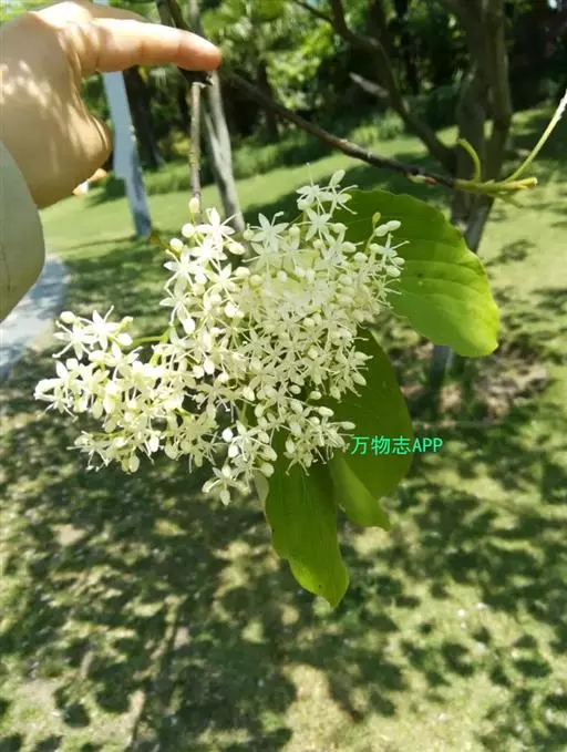 落叶乔木,高6-15米,稀达20米;树皮光滑,暗灰色或带黄灰色;枝开展,圆柱形,无毛或疏生短柔毛,当年生枝紫红绿色,二年生枝淡绿色,有半月形的叶痕和圆形皮孔。冬芽顶生或腋生,卵圆形或圆锥形,长3-8毫米,无毛。叶互生,纸质,阔卵形、阔椭圆状卵形或披针状椭圆形,长6-13厘米,宽3.5-9厘米,先端突尖,基部圆形或急尖,全缘,上面黄绿色,无毛,下面灰绿色,密被淡白色平贴短柔毛,中脉在上面微凹陷, 灯台树花 下面凸出,微带紫红色,无毛,侧脉6-7对,弓形内弯,在上面明显,下面凸出,无毛;叶柄紫红绿色,长2-6.5厘米,无毛,上面有浅沟,下面圆形。伞房状聚伞花序,顶生,宽7-13厘米,稀生浅褐色平贴短柔毛;总花梗淡黄绿色,长1.5-3厘米;花小,白色,直径8毫米,花萼裂片4,三角形,长约0.5毫米,长于花盘,外侧被短柔毛;花瓣4,长圆披针形,长4-4.5毫米,宽1-1.6毫米,先端钝尖,外侧疏生平贴短柔毛;雄蕊4,着生于花盘外侧,与花瓣互生,长4-5毫米,稍伸出花外,花丝线形,白色,无毛,长3-4毫米,花药椭圆形,淡黄色,长约1.8毫米,2室,丁字形着生;花盘垫状,无毛,厚约0.3毫米;花柱圆柱形,长2-3毫米,无毛,柱头小,头状,淡黄绿色;子房下位,花托椭圆形,长1.5毫米,直径1毫米,淡绿色,密被灰白色贴生短柔毛;花梗淡绿色,长3-6毫米,疏被贴生短柔毛。核果球形,直径6-7毫米,成熟时紫红色至蓝黑色;核骨质,球形,直径5-6毫米,略有8条肋纹,顶端有一个方形孔穴;果梗长约2.5-4.5毫米,无毛。花期5-6月;果期7-8月。