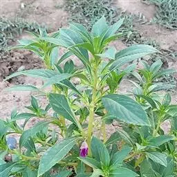 一年生草本,高30-50厘米,全株无毛。茎直立,绿色或带紫色,下部长裸露,节肿大,具少数不定根,上部具疏腺毛。不分枝或有时下部长出短分枝。