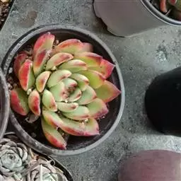 毛叶莲花掌 又名墨染、景天科、莲花掌属;喜温暖干燥和阳光充足环境。不耐寒,耐干旱,但怕高温。毛叶莲花掌株高20—30厘米,枝叶繁茂,四季常青。盆栽适用于布置厅堂居室。