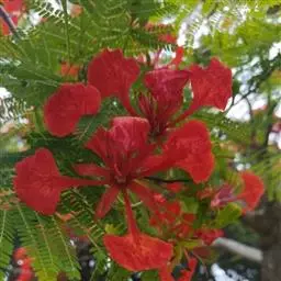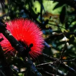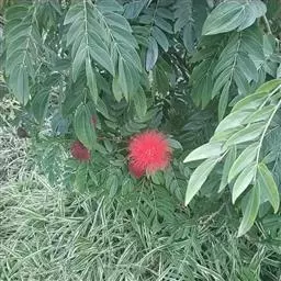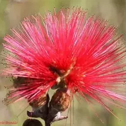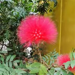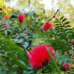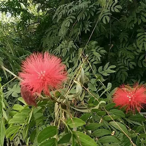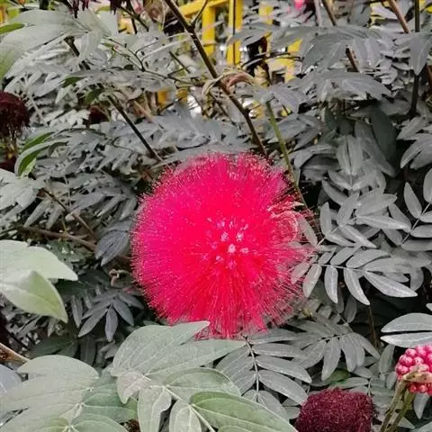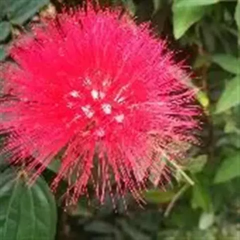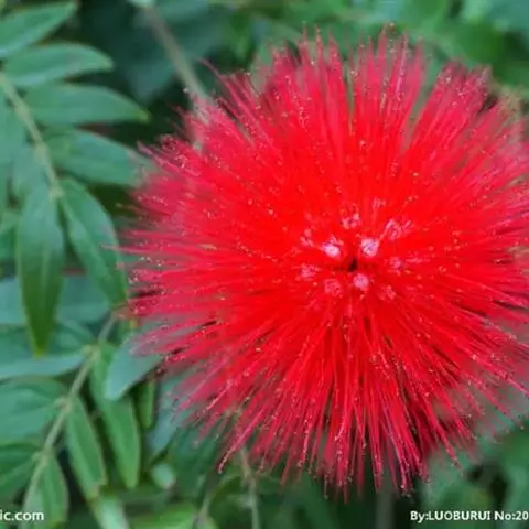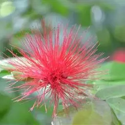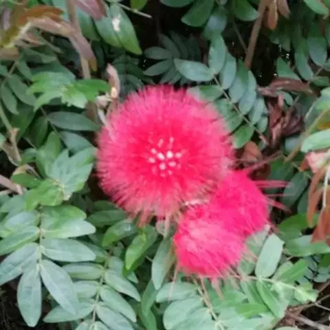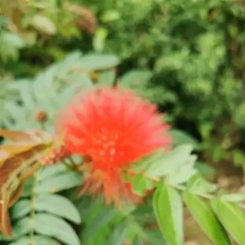 红粉扑花在正午或晚上时,其叶子和花朵均会闭合起来。盛开的花朵其头状花序腋生,有密集且细长的花丝聚合而成“束状”,颜色为鲜红色(花期最长为11个月)。