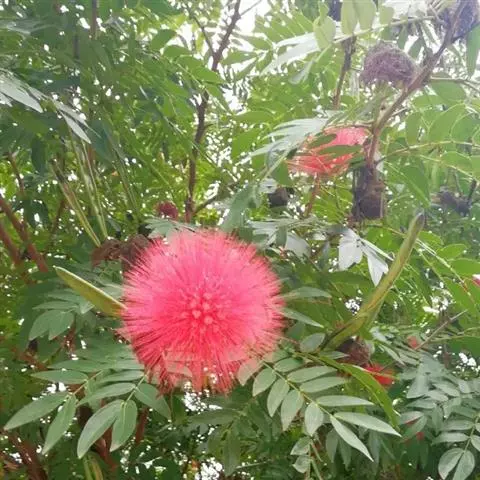红粉扑花 红粉扑花开花良好,但不结实或结实少,种子常败育,无法采用播种方式进行大量繁育,一般采取无性繁育方法,即扦插育苗为主,红粉扑花采用硬枝扦插,时间多为秋季。