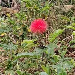 红粉扑花(学名:Calliandra emarginata (Humb. & Bonpl. ex Willd.) Benth)是豆科,朱缨花属半落叶灌木。株高为可达2米,二回羽状复叶(互生),具有1对羽片,而其小叶只有1对,其形状如肾脏形。红粉扑花在正午或晚上时,其叶子和花朵均会闭合起来。盛开的花朵其头状花序腋生,有密集且细长的花丝聚合而成“束状”,颜色为鲜红色。花期最长为11个月。