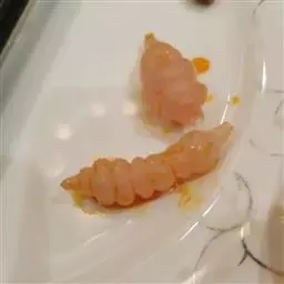 1. 虾经油爆,表面油光润滑,虾壳薄亮透明,故又称“光明虾炙”;