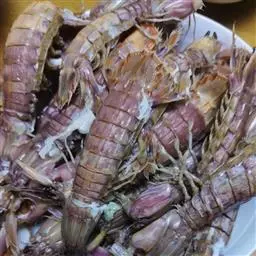 1、将虾剪去钳、须、脚,洗尽沥去水。