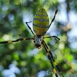 大腹园蛛雌蛛长达30毫米,灰褐色。多在庭院房前屋后及山洞和大石间布大型圆网,以捕飞虫为食。夜间居网的中心,白天在网旁的缝隙或树叶丛中隐蔽。卵袋产于墙或树皮裂缝等处,每卵袋中含卵500-1000个。内蒙古大部分地区均有分布,我国大部分省区市也有分布 。