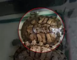 刚开始投饵时,鳄龟不习惯到食台上来,可根据它们喜好夜间觅食的习性,在傍晚将食物投喂到食台附近,逐步过渡到食台上,就这样慢慢地做好驯饵工作。第二天早上检查吃食情况,主要看有无剩余,并作记录 。
