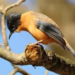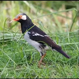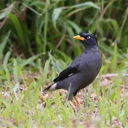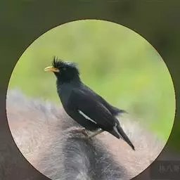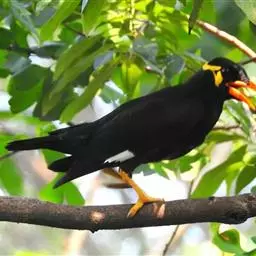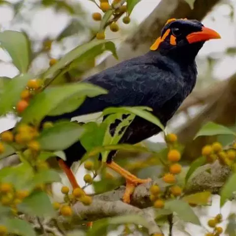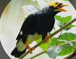 黑冠椋鸟:中等体型的椋鸟,体长21厘米。雄鸟前头为黑色并具金属光泽;头顶、颈项和羽冠亦为黑色;翅及翅上覆羽黑色;尾羽褐色,具白色端斑;上体灰色;下体淡黄褐色。雌鸟形态与雄鸟相似,但羽冠较雄鸟为短。虹膜蓝白或乳黄色;嘴峰铅绿色;跗蹠及爪柠檬黄色。头具黑色羽冠,与其他椋鸟易于区别。主要栖息于开阔落叶阔叶林和灌木林中以及多营巢于树洞中或其他洞穴内。属群鸟共栖。常4-8只结小群活动。鸣声清脆响亮。食物有果实和浆果,偶食花蜜和小型昆虫。分布于印度、中国云南耿马。常见于印度城镇、村庄及铁路沿线。偶见于中国云南西南部和西藏东南部。