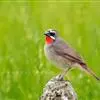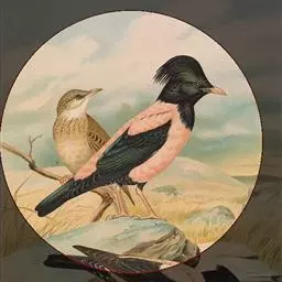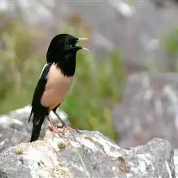 粉红椋鸟:中等体型,成鸟体长19-22厘米,体重60-73克,飞羽、尾羽为亮黑色,雌鸟与雄鸟毛色相似,…