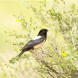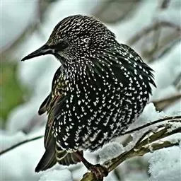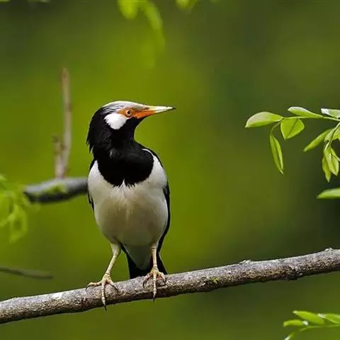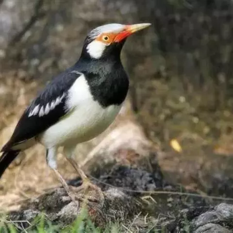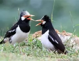 斑椋鸟:是中等体型的黑白色椋鸟,体长24厘米。头顶、头侧、翼斑、腰及腹部白色,喉、胸及上体余部黑色,…