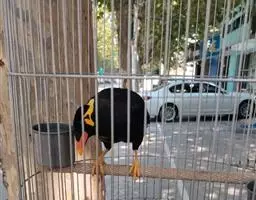 金冠树八哥为椋鸟科树八哥属的鸟类。体长约23厘米,闪辉黑色。特征为具翼斑及颏黄色,脸颊裸露皮肤粉黄色。…
