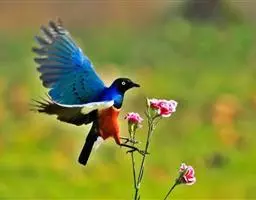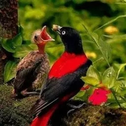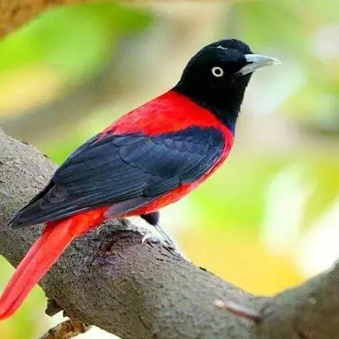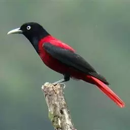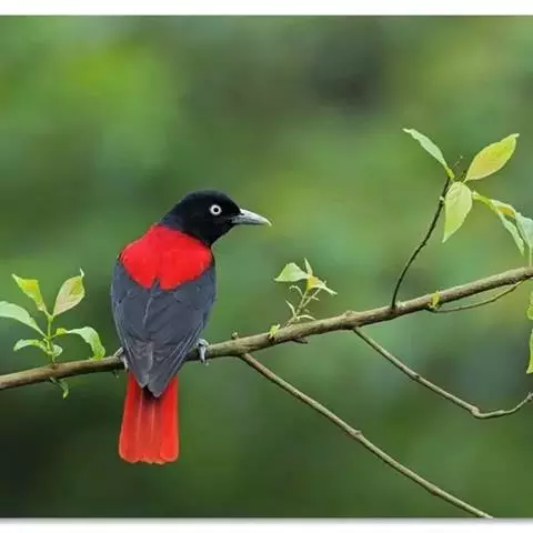 朱鹂:中等鸟类,体长23-28厘米。雄鸟绛紫红色,头、上胸及翼黑色。雌鸟上背及背部深灰色,…