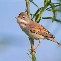 白喉林莺:体长10-13厘米,是一种类体型略小的莺鸟。喉白,上体灰褐或沙褐色,头顶较灰,…