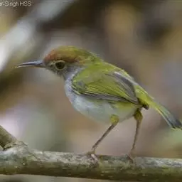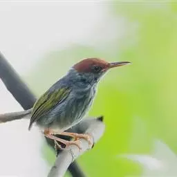 黑喉缝叶莺:体长11.5厘米,是一种小型的顶冠棕色、腹部白色的莺。尾甚长而常上翘,臀黄色,…