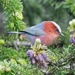凤头雀莺:小型鸟类。体长9-10厘米,雄鸟呈毛茸茸的紫色和绛紫色,顶冠淡紫灰色,额及凤头白色,尾全蓝。…
