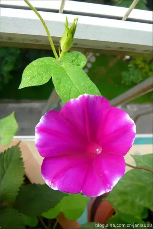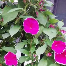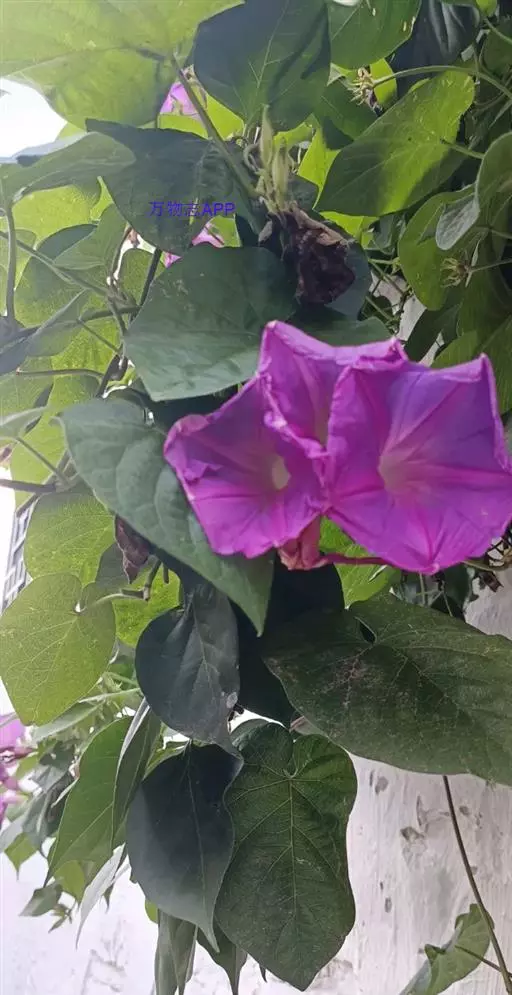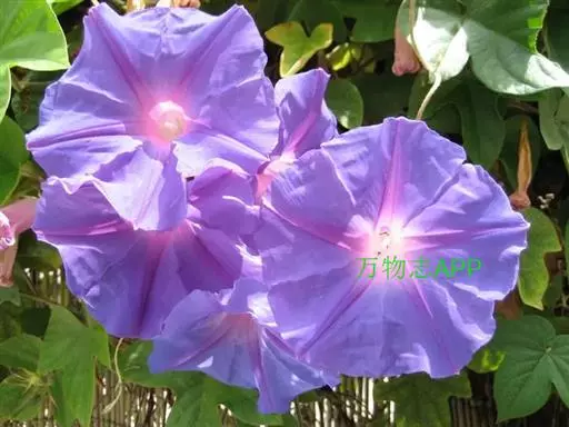 大花牵牛清晨开放,花大色艳,是夏秋重要的蔓性花卉。适用于花架、篱垣,为庭院及居室的遮荫植物。也可盆栽或作地被种植,别有风趣。