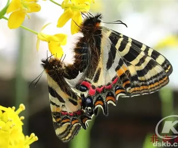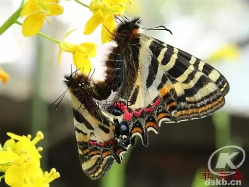 虎凤蝶(学名:Luehdorfia puziloi)是虎凤蝶属的蝴蝶种类,成虫体态中型,翅膀基色为黄色,前翅外缘有宽的黑带,翅面有一些黑色短纹,犹如虎皮。后翅外缘波形,尾突短,外缘黑带上镶有弯月形黄斑,黑带的中间嵌有蓝色斑点,最里面有一列弯月形红斑,十分美丽。喜欢生活在光线较强而湿度不太大的林缘地带。飞翔能力不强。经常寻访的蜜源植物主要有蒲公英、紫花地丁及其他堇科植物。完全变态,一生要经历卵、幼虫、蛹、成虫等四个阶段。产卵于芸香科、樟科、伞形花科及马兜铃科等植物上。分布于中国、日本和朝鲜半岛。