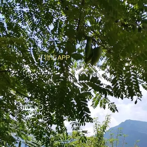 落叶乔木,无刺,高达5-12米;树皮灰褐色,具明显的白色皮孔;当年生小枝被锈色或白色短柔毛,后变光滑无毛。二回偶数羽状复叶长20-25厘米,无托叶;叶轴具槽,被短柔毛;羽片对生、近对生或互生,5-10对;小叶互生,8-12对,几无柄,具钻形的小托叶,小叶片长圆形,长2.5-5厘米,宽1-1.5厘米,两端圆钝,先端有时微凹,基部稍斜,两面被绢质柔毛。总状花序顶生,被短柔毛;花杂性,白色或带紫色,有长梗,下垂;苞片小或消失;花托深凹,长5-6毫米,被短柔毛;萼片钻形,较花托稍短;花瓣长圆形,先端钝,较萼片稍长,被硬毛;花丝被柔毛;子房无毛,不具柄,有4颗胚珠,花柱粗短,柱头头状。英果长圆形,长7-10厘米,宽3-4厘米,扁平或膨胀,无毛,顶端有短喙,有种子2-4颗;种子近球形而稍扁,直径约2厘米,黑色,平滑无毛。8月间结果。