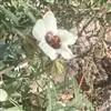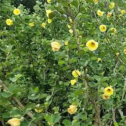 花单生于叶腋,花梗长约5毫米,被长毛;小苞片线形,长5毫米,宽1毫米,疏被长毛;萼浅杯状,5裂,裂片卵形,渐尖头,长约8毫米,基部合生,疏被单长毛和星状长毛;花黄色,直径约1.5厘米,花瓣5,倒卵形,长约8毫米,宽约4毫米;雄蕊柱长约6毫米,无毛。果直径约6毫米,分果爿8-12,肾形,疏被星状柔毛,直径约2.5毫米,背部宽约1毫米,具2芒刺。