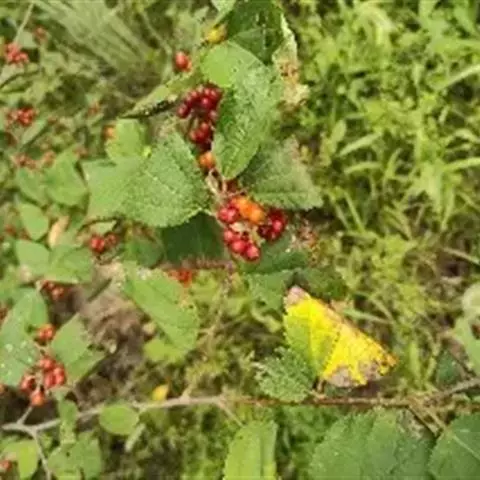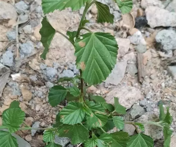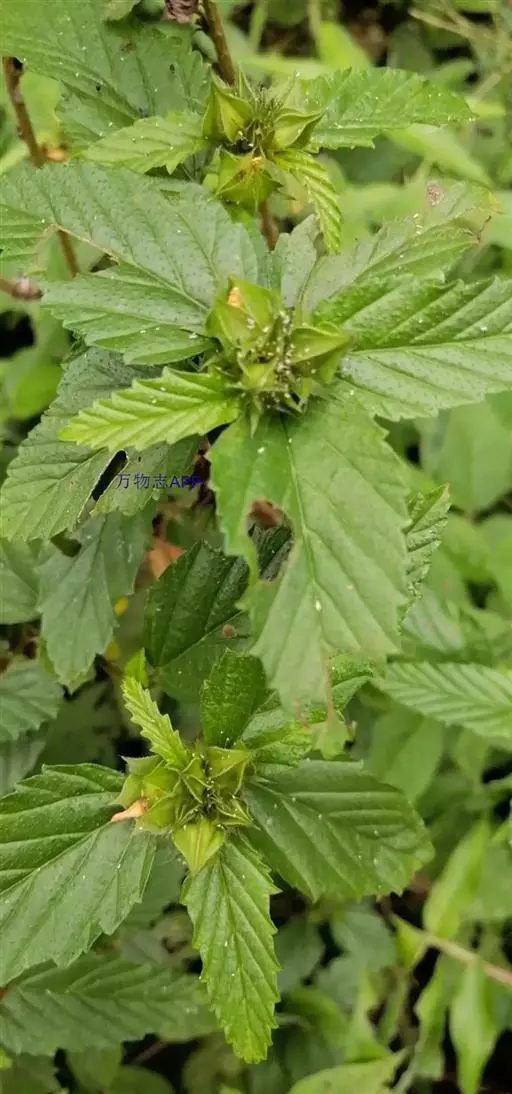 亚灌木状,直立,高达1米,疏被单毛和星状粗毛。叶卵状披针形或卵形,长3-6厘米,宽1-3厘米,先端钝尖,基部宽楔形至圆形,边缘具粗锯齿,上面疏被长毛,下面疏被长毛和星状长毛;叶柄长1-3厘米,密被长毛;托叶披针形,长约5毫米。