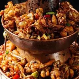 名字有“花”的蔬菜是比较秀气的、典雅的,但湘菜中的“大碗花菜”和“干锅花菜”,端上来热腾腾麻辣辣,透着一股子豪爽,吃起来更是香气四溢,绝对是下饭菜。在此要表扬一下“干锅”这个伙计,干锅是川菜的制作方法之一,起源于川渝之地,口味麻辣鲜香。与火锅和汤锅相比,汤少味更足,可作为菜品直接上桌食用,各种荤素搭配都可。