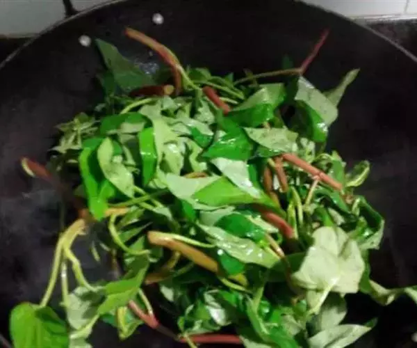 4、最后那把大蒜叶入锅后,不要马上盛起,盖上盖子焖一会儿,大蒜叶颜色更碧绿更好看。