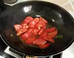 4.放姜和大葱,接着放西红柿;