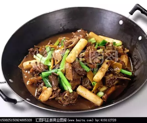 5、然后就可装入干锅中撒上葱段上桌 。
