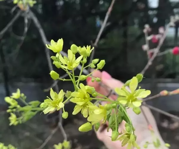 高风华通过对色木槭开花习性与幼果发育的观察与研究,结果表明:在相同小气候条件下,株间花期物候特征相差4~6天要的≥10℃的有效积温存在明显差异,是遗传差异作用的结果;然而花期差异不大,为15~16天。花的形态构造有2种类型3、个开放时间。即第1批花为雄蕊伸长型,第2批花为雌蕊伸长型,第3批既有雄蕊伸长型,亦有雌蕊伸长型;雌蕊伸长型最终发育成小幼果,存在部分花果同期现象。