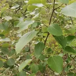 卵叶山杨(植物研究):叶卵形,长4-6厘米,宽2.5-4.5厘米,先端急尖,基部圆形或阔楔形,边缘具粗锯齿。分布于甘肃、陕西、山西、河北。生长于海拔600-1800米的山坡。