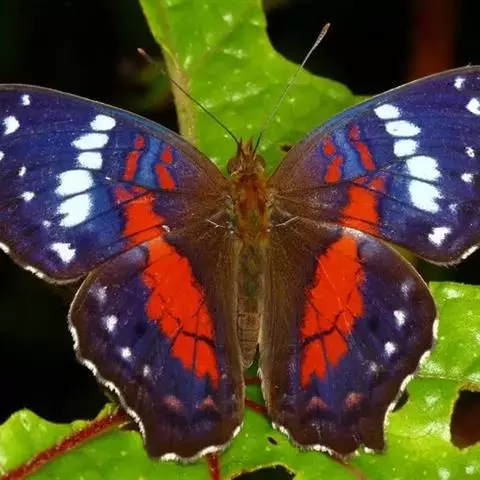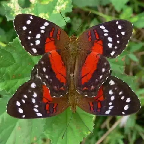 优红蛱蝶是一种美丽的蝴蝶。翼展4.5-12厘米。色彩鲜艳,花纹相当复杂。后翼为黑色,有红橙色频带,边缘处有白色细带;前翅正面也是黑色,正中有红色带,近翼角处有心状的白色斑纹。这些蝴蝶往往在夏季比冬季具更亮的颜色和较大的体重。腿和眼睛往往是多毛,头中等大。