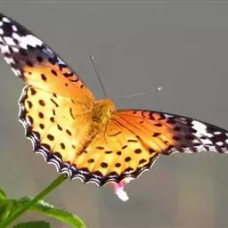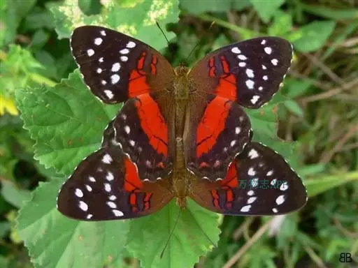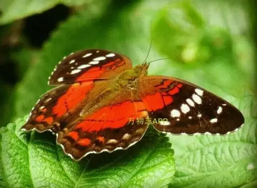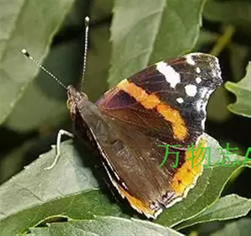 优红蛱蝶(学名:Vanessa atalanta):翼展4.5-12厘米。是一种美丽的蝴蝶。色彩鲜艳,花纹相当复杂。前足相当退化,短小无爪。前翅R脉5条,常共柄。卵呈半圆球形。幼虫头上常有突起,体节上有枝刺,腹足趾钩1至3序中列式。蛹为垂蛹。