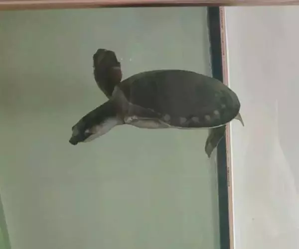 猪鼻龟(学名:Carettochelys Insculpta)是猪鼻龟科、猪鼻龟属动物。头中型,吻突出平截,酷似猪鼻,背灰色无花纹、无盾片,背较隆起,中央有一条纵嵴;腹甲白色或乳臼色且扁平,亦无盾片;前后技趾具发达的鳍状蹼,且仅有芮个爪,故名两爪鳖。 成年雄龟的尾部比较长,泄殖孔的位置也比较靠后;成年雌龟尾部则较短小。