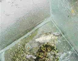 驯食:通常该种龟鳖喜在水底觅食,但沉性饲料不易观察到吃食情况,为在透明度较低的养龟水体中便于观察吃食、龟活动、检查存活等情况更为了提高饲料利用率,提倡采用浮性颗粒饲料,因此用“声诱、时、定位”及诱食效果好的腩化浮颗粒饲料来驯食,一般经4-6天,即可上浮吃浮性饲料。