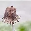 雌鸟上体棕红色,头顶至后颈以及颈侧具粗著的黑褐色羽干纹;背到尾上覆羽具粗著的黑褐色横斑;尾亦为棕红色,具9-12道黑色横斑和宽的黑色次端斑与棕黄白色尖端;翅上覆羽与背同为棕黄色,初级覆羽和飞羽黑褐色,具窄的棕红色端斑;飞羽内翈具白色横斑,并微缀棕色;脸颊部和眼下口角髭纹黑褐色。下体乳黄色微沾棕色,胸、腹和两胁具黑褐色纵纹,覆腿羽和尾下覆羽乳白色,翅下覆羽和腋羽淡棕黄色,密被黑褐色斑点,飞羽和尾羽下面灰白色,密被黑褐色横斑。