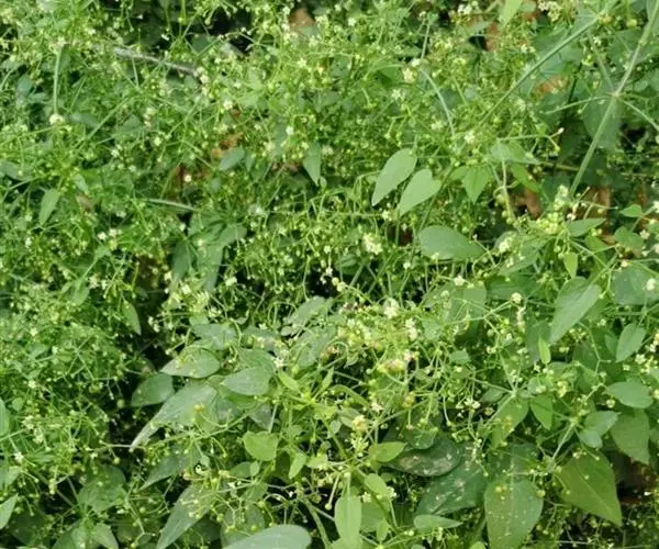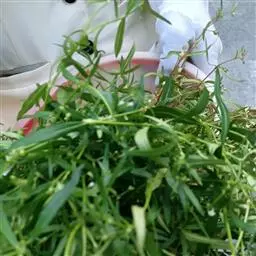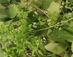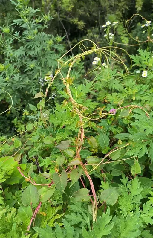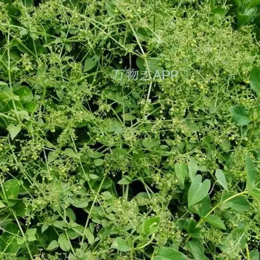 茜草(学名:Rubia cordifolia L.):茜草科,茜草属多年生草质攀援藤木,长通常可达3.5米;根状茎和其节上的须根均红色;茎多条,细长,方柱形,棱上生倒生皮刺,叶片轮生,纸质,披针形或长圆状披针形,顶端渐尖,心形,边缘有齿状皮刺,两面粗糙,叶柄长可达2.5厘米,聚伞花序腋生和顶生,,有花数十朵,花序和分枝均细瘦,花冠淡黄色,花冠裂片近卵形,果球形,橘黄色。8-9月开花,10-11月结果。