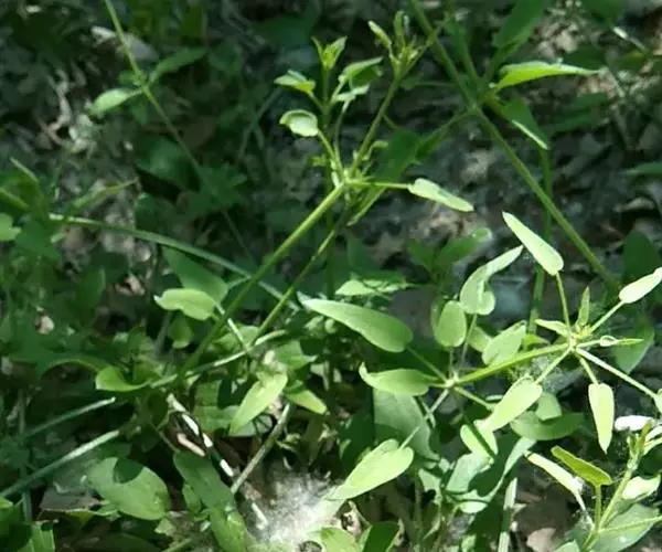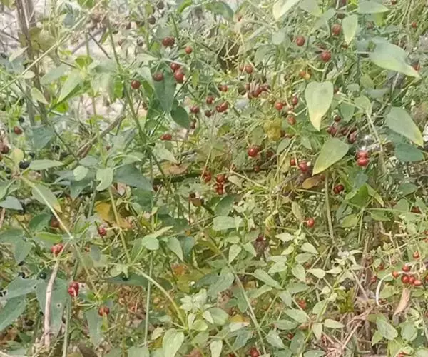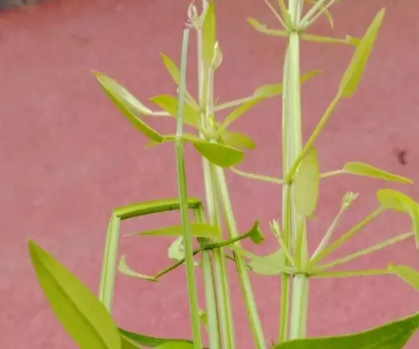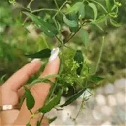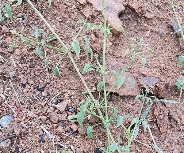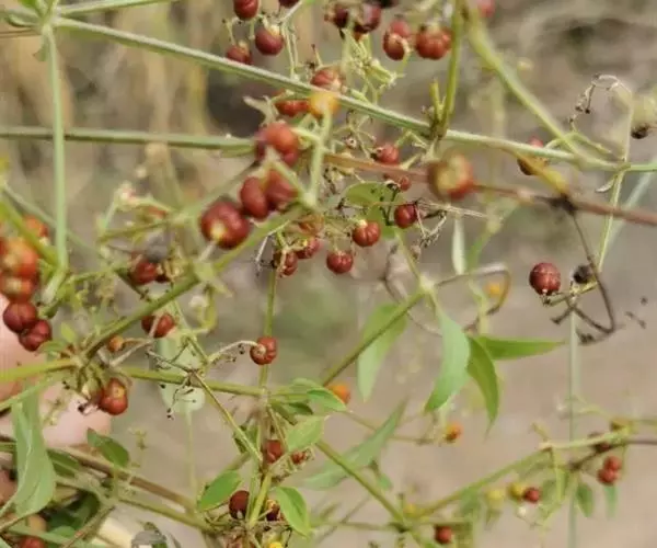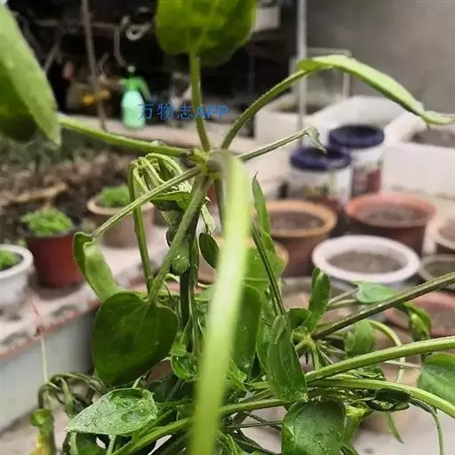茜草 草质攀援藤木,长通常1.5-3.5米;根状茎和其节上的须根均红色;茎数至多条,从根状茎的节上发出,细长,方柱形,有4棱,棱上生倒生皮刺,中部以上多分枝。