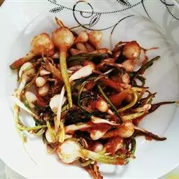 3.放盐、白糖、料酒,继续翻炒3分钟左右,最后放葱花炒匀即可。