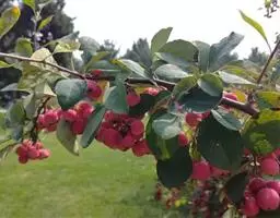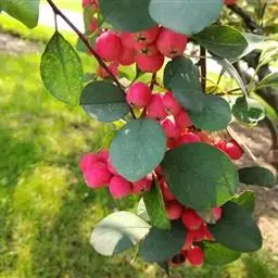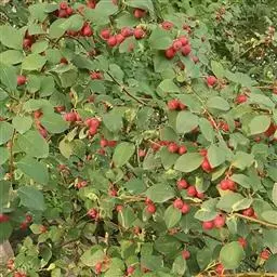 小叶栒子大果变种 该变种具广阔开展枝条和较大叶片及果实,叶片长6-10(16)毫米,果实直径8-10毫米。 分布于西藏东南部雅鲁藏布江河谷,生长于海拔2700-3300米的地区。 果色鲜艳,秋冬经久不凋,观赏价值很高。