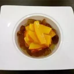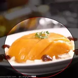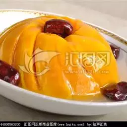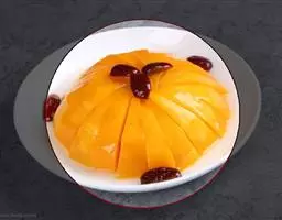 4、南瓜放在盘中,放上红枣,中间放上百合。