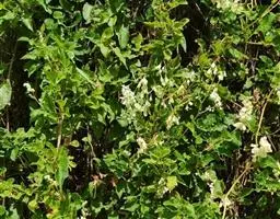 多年生常绿藤本,呈匍匐状,黑色枝条长达6米长,圆形,绿色,茎红褐色或黑褐色,似铁丝茎,形成一个宽达2米的密集土堆,爬过其他植物。它会爬到5米或更高的高度覆盖树木。叶小,互生,心形或近圆形,先端尖,基部近截平,叶子长2厘米。花小,黄绿色。种子黑色。 [6-7]