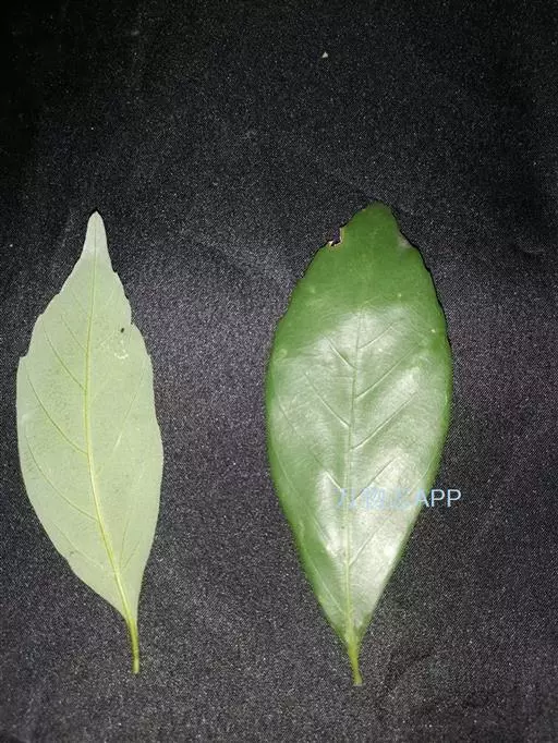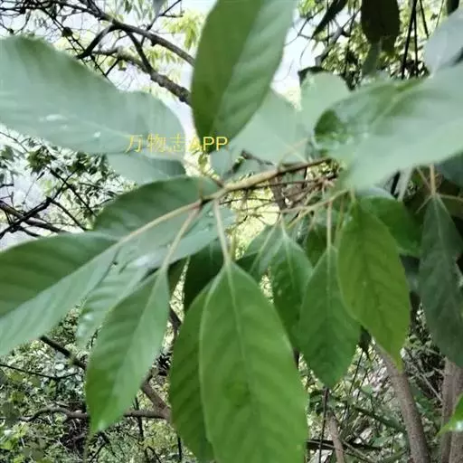 叶片革质,倒卵状椭圆形或长椭圆形,长6-13厘米,宽2-5.5厘米,顶端渐尖或短尾状,基部圆形或宽楔形,叶缘中部以上有疏锯齿,侧脉每边9-13条,叶背支脉明显,叶面无毛,叶背有整齐平伏白色单毛,老时渐脱落,常有白色鳞秕;叶柄长1-3厘米。