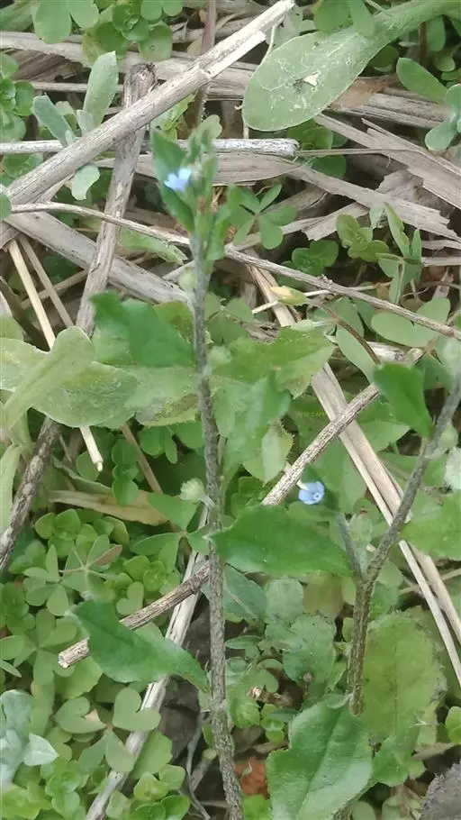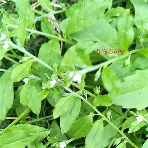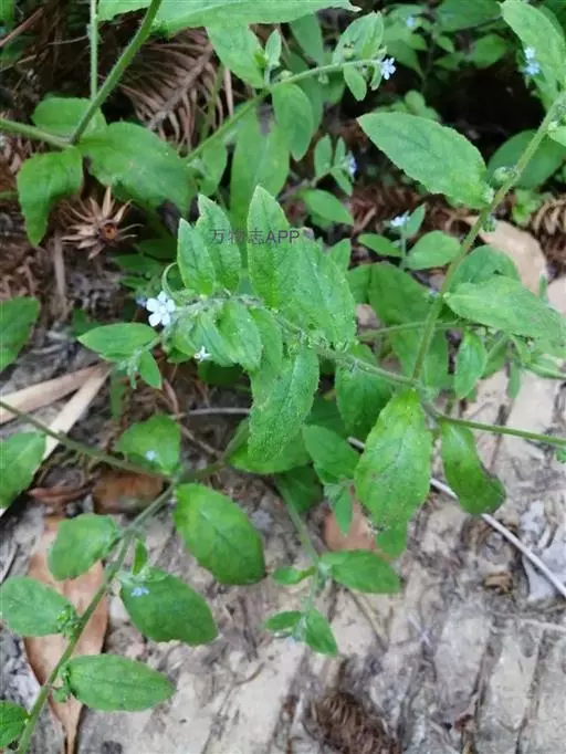 一年生草本,高15-30厘米。茎细弱,丛生,直立或平卧,多分枝,被向上贴伏的糙伏毛。叶椭圆形或狭椭圆形,长1-2.5厘米,宽0.5-1厘米,先端钝,具小尖,基部宽楔形,上下两面被向上贴伏的糙伏毛或短硬毛。花序柔弱,细长,长10-20厘米;苞片椭圆形或狭卵形,长0.5-1厘米,宽3-8毫米,被伏毛或硬毛;花梗短,长1-2毫米,果期不增长或稍增长;花萼长1-1.5毫米,果期增大,长约3毫米,外面密生向上的伏毛,内面无毛或中部以上散生伏毛,裂片披针形或卵状披针形,裂至近基部;花冠蓝色或淡蓝色,长1.5-1.8毫米,基部直径1毫米,檐部直径2.5-3毫米,裂片圆形,长宽约1毫米,喉部有5个梯形的附属物,附属物高约0.2毫米;花柱圆柱形,极短,长约0.5毫米,约为花萼1/3或不及。小坚果肾形,长1-1.2毫米,腹面具纵椭圆形的环状凹陷。花果期2-10月。