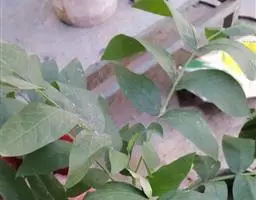 柚 乔木。嫩枝、叶背、花梗、花萼及子房均被柔毛,嫩叶通常暗紫红色,嫩枝扁且有棱。叶质颇厚,色浓绿,阔卵形或椭圆形,连冀叶长9-16厘米,宽4-8厘米,或更大,顶端钝或圆,有时短尖,基部圆,翼叶长2-4厘米,宽0.5-3厘米,个别品种的翼叶甚狭窄。