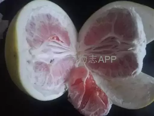 坪山柚:果椭圆形,两肩削,果顶近于平坦,蒂部有凸棱,果皮油胞大,凸起,海绵层及果肉均淡红色,果心空,肉爽脆,水分多,味清甜,酸份低。果期与文旦同。