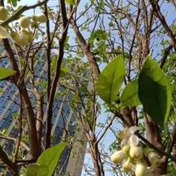 柚的结果枝多为花序果枝,即有叶花序果枝和无叶花序果枝两种类型。有叶花序果枝为带叶的结果枝,除顶端有花外,其他各叶腋也多着生花蕾,或在新梢顶端抽生一总状花序,有叶花序果枝花数4-8朵不等。无叶花序果枝上无叶或仅有1-2片极小叶片,枝上着生3-45朵花不等。