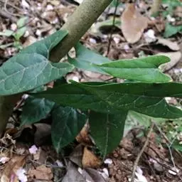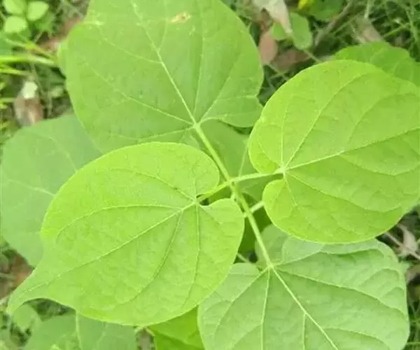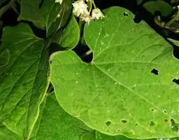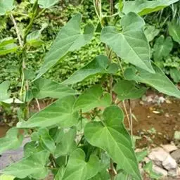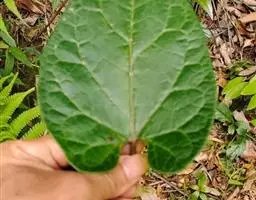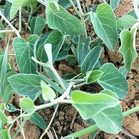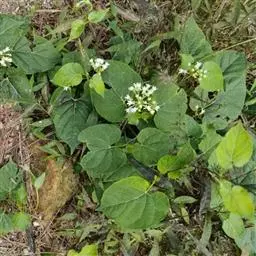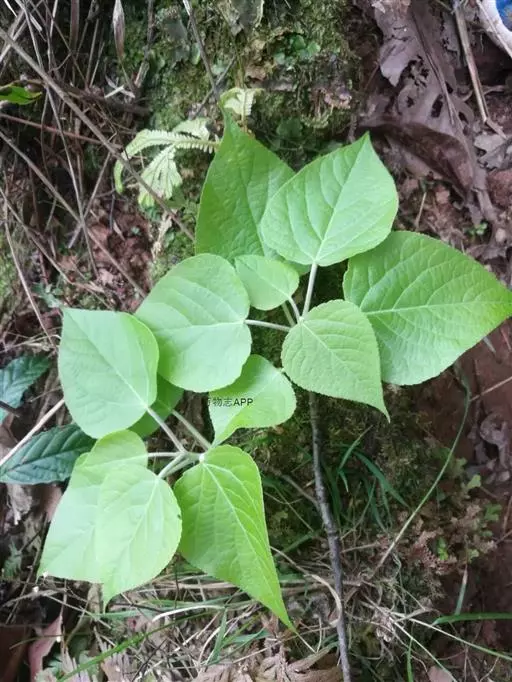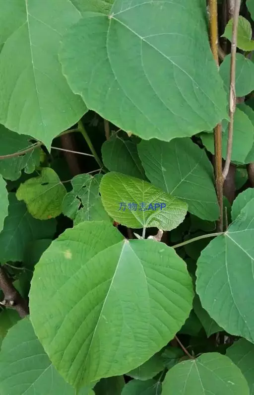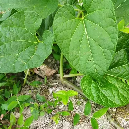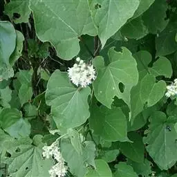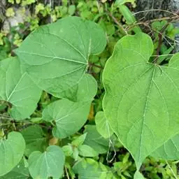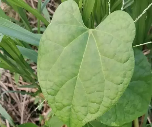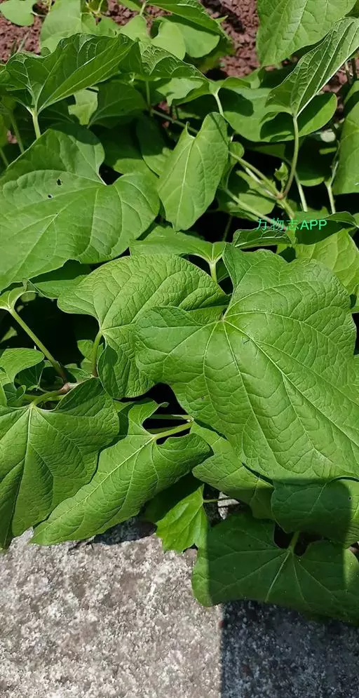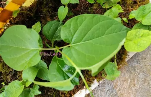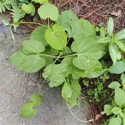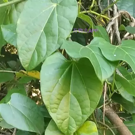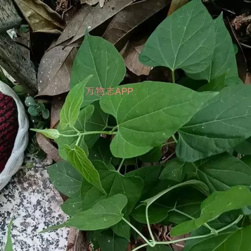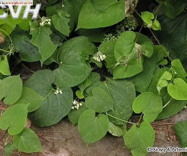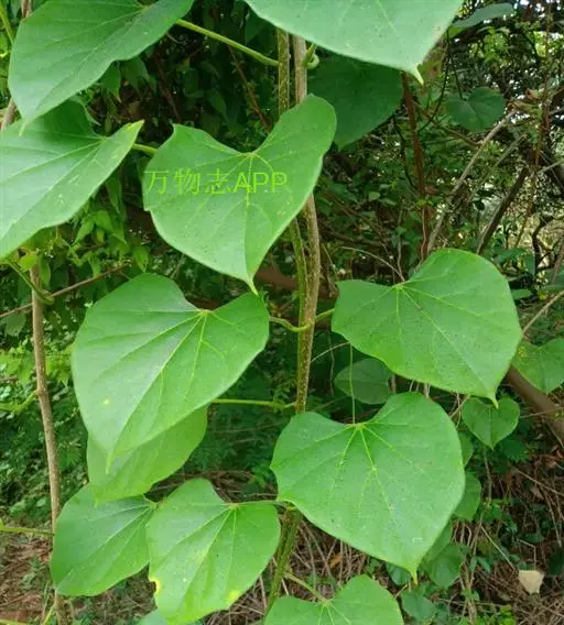 蔓性半灌木;宿根肥厚,呈块状;茎圆形,被微柔毛。叶对生,膜质,被微毛,宽卵形至卵状长圆形,长4-12厘米,宽4-10厘米,顶端短渐尖,基部心形。
