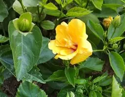 一年生或多年生草本,高1-2米,疏被长硬毛。叶掌状5-9深裂,直径15-30厘米 黄蜀葵 ,裂片长圆状披针形,长8-18厘米,宽1-6厘米,具粗钝锯齿,两面疏被长硬毛;叶柄长6-18厘米,疏被长硬毛;托叶披针形,长11-1.5厘米。花单生于枝端叶腋;小苞片4-5,卵状披针形,长15-25毫米,宽4-5毫米,疏被长硬毛;萼佛焰苞状,5裂,近全缘,较长于小苞片,被柔毛,果时脱落;花大,淡黄色,内面基部紫色,直径约12厘米;雄蕊柱长1.5-2厘米,花药近无柄;柱头紫黑色,匙状盘形。蒴果卵状椭圆形,长4-5厘米,直径2.5-3厘米,被硬毛;种子多数,肾形,被柔毛组成的条纹多条。花期8-10月。