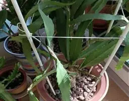 扦插:将插穗基部浅埋入基质内,切忌过深,造成腐烂。此时插穗难以直立(因其经晾晒已变软),可以将它平置在基质上;也可用小木棒支撑,再用双手轻轻压紧插穗两旁的土,使其与土密接。