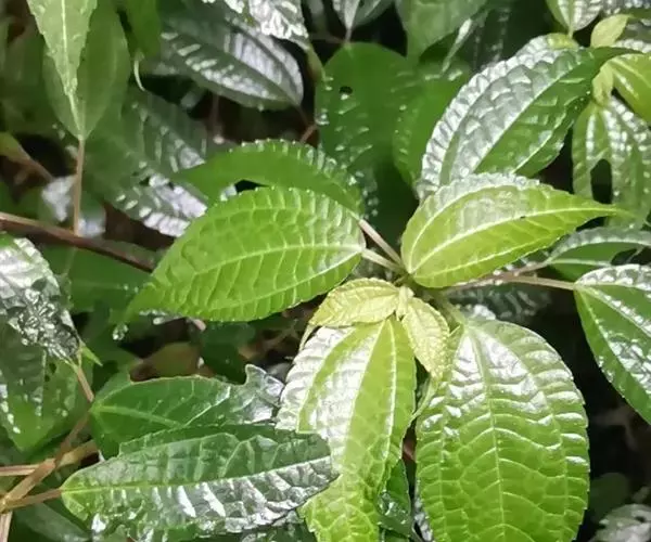 一年生草本。茎肉质,直立,高5-50厘米,无毛,分枝或不分枝。叶近膜质,同对的近等大,近平展,菱状卵形或宽卵形,长1-9厘米,宽0.6-5厘米,先端渐尖、短渐尖、锐尖或微钝(尤在下部的叶),基部常宽楔形,有时钝圆,边缘除基部全缘外,其上有牙齿或牙状锯齿,稀近全绿,两面疏生透明硬毛,钟乳体条形,长约0.3毫米,基出脉3条,侧出的一对微弧曲,伸达上部与侧脉网结或达齿尖,侧脉数对,不明显,上部的几对常网结;叶柄长0.5-4.5厘米,上部近叶片基部常疏生短毛;托叶卵状长圆形,长2-3毫米,后脱落。